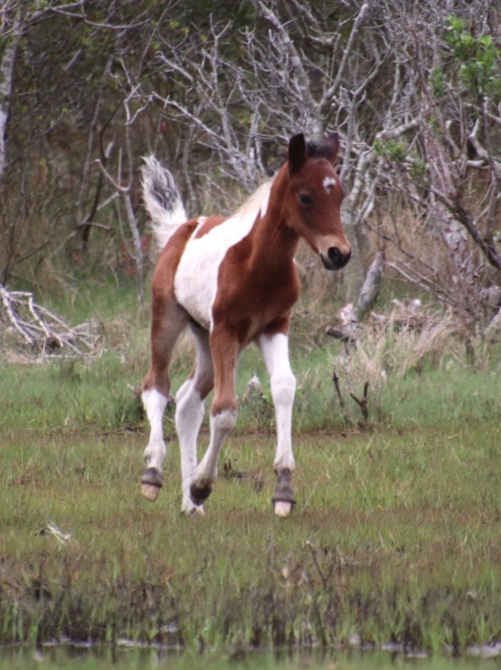 I try to post a view of the foal's face, and a view of both sides; if the foal is a pinto, I also try to post a "butt view" if it's available. Sometimes, even if a photographer waits for hours, they can't get views from all sides. It's what happens when one deals with wild (or feral) animals, and the photographer has to stay either on a boat, or on a trail.